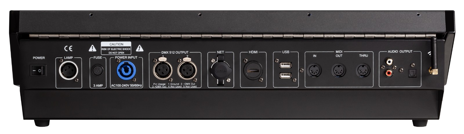 ● 接管規范MIDI裝備節制,供給MIDI IN, MIDI OUT和MIDI THRU接口,許可以主-從體例完成多個控臺并機任務。